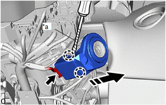 (b) A l'aide d'un tournevis dont la pointe a été préalablement entourée de ruban adhésif de protection, libérer les griffes pour déposer la bobine de clé à transpondeur, comme indiqué sur le schéma.