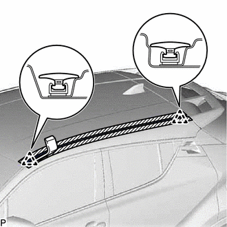 (a) Engager les 2 agrafes pour reposer la gouttière centrale de toit, comme indiqué sur le schéma.